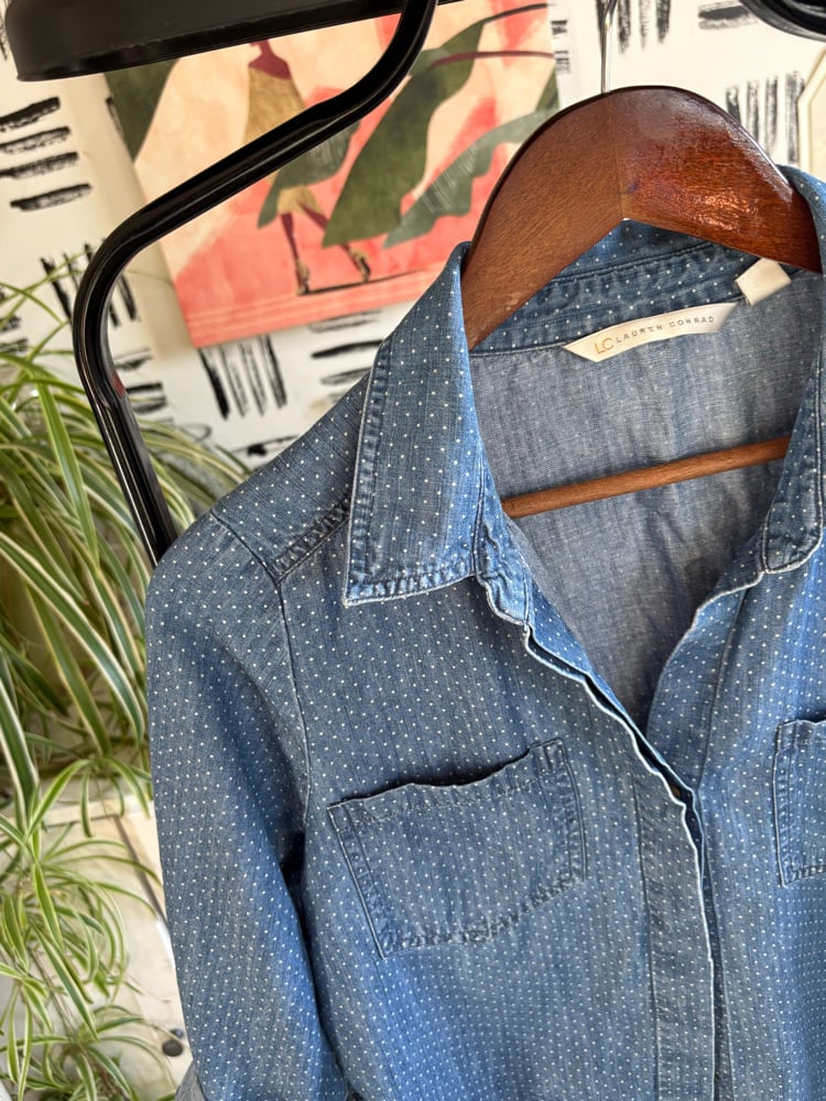 Denim polka dot button up