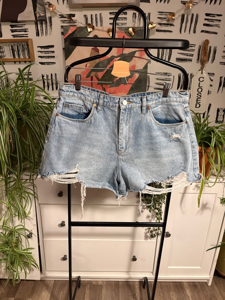 Distressed denim shorts