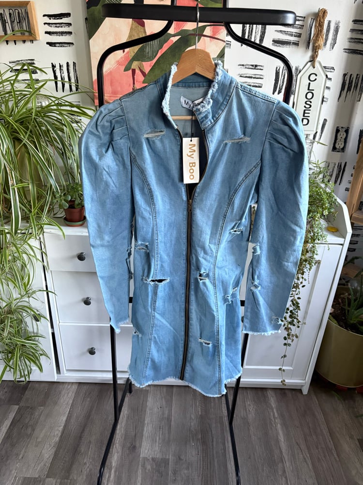 NWT denim distressed dress M