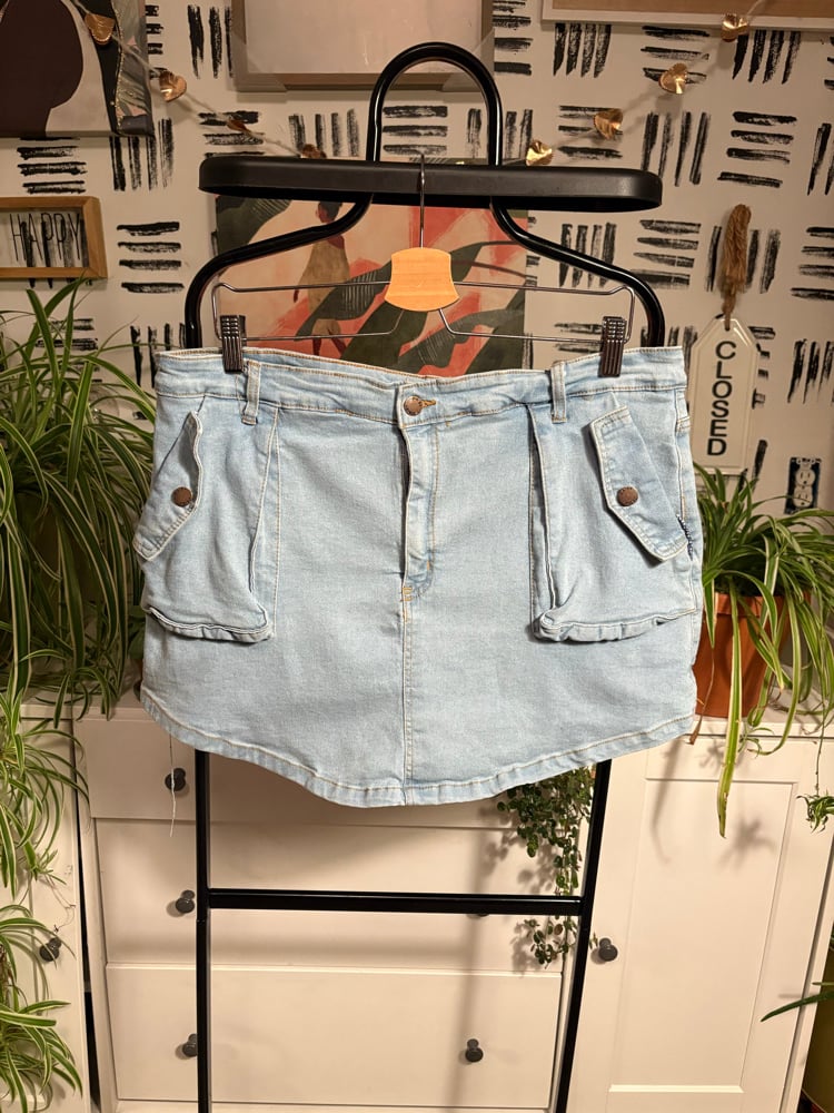 Side pocket denim mini skirt